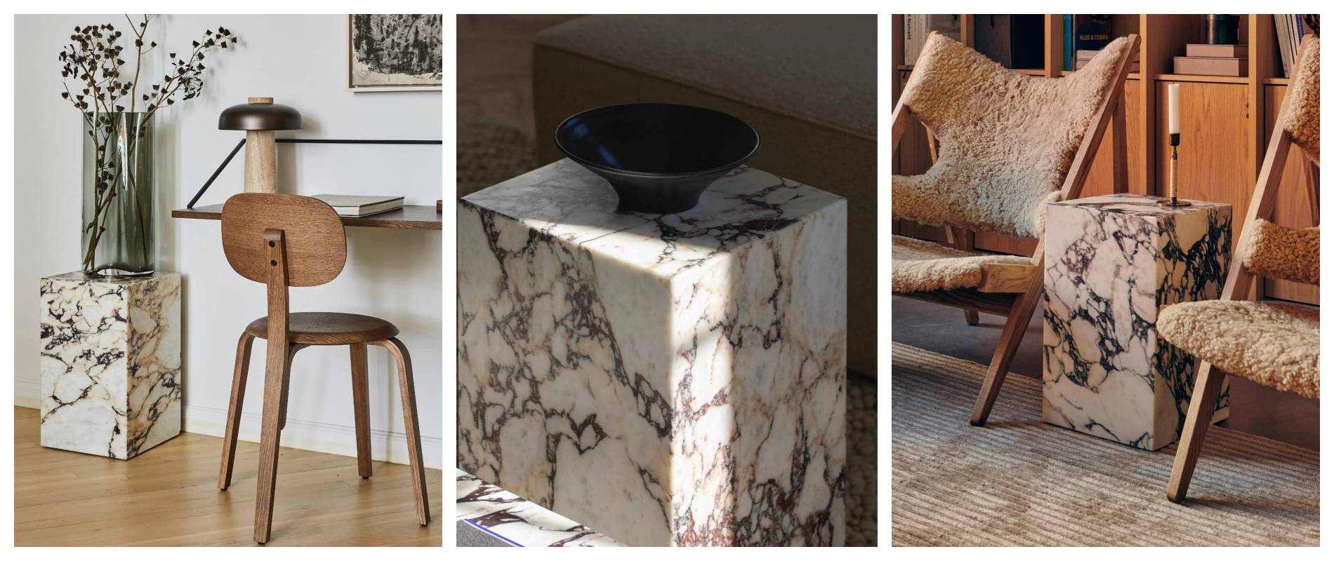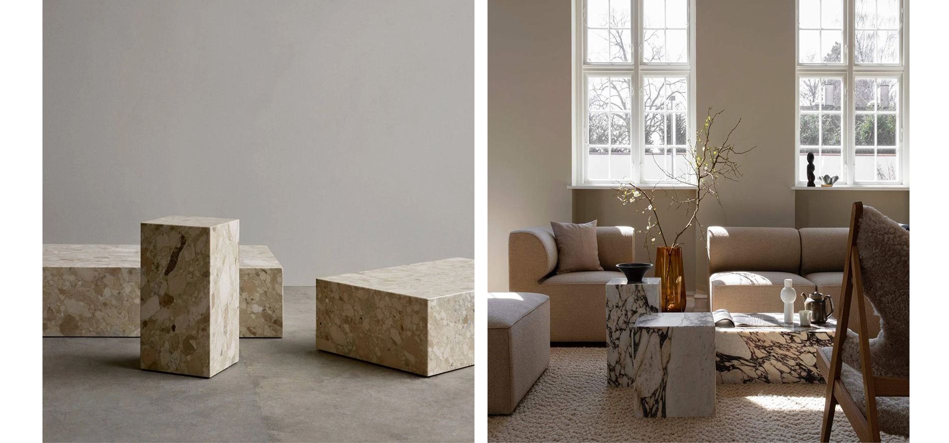 Nossa coleção inclui a mesa de centro Plinth e duas mesas laterais de tamanhos diferentes, projetadas para se adaptarem com flexibilidade a vários tipos de residências — independentemente do tamanho do espaço, elas podem se misturar facilmente, infundindo instantaneamente ao interior um ar de luxo refinado.